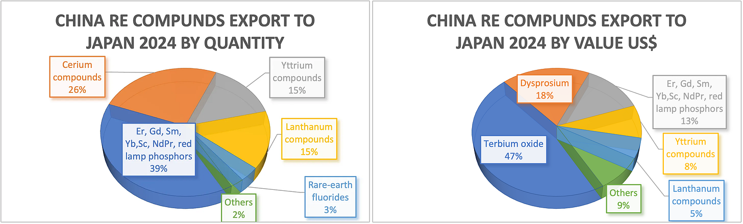 Here quantity and value of China rare earth exports to Japan in 2024: