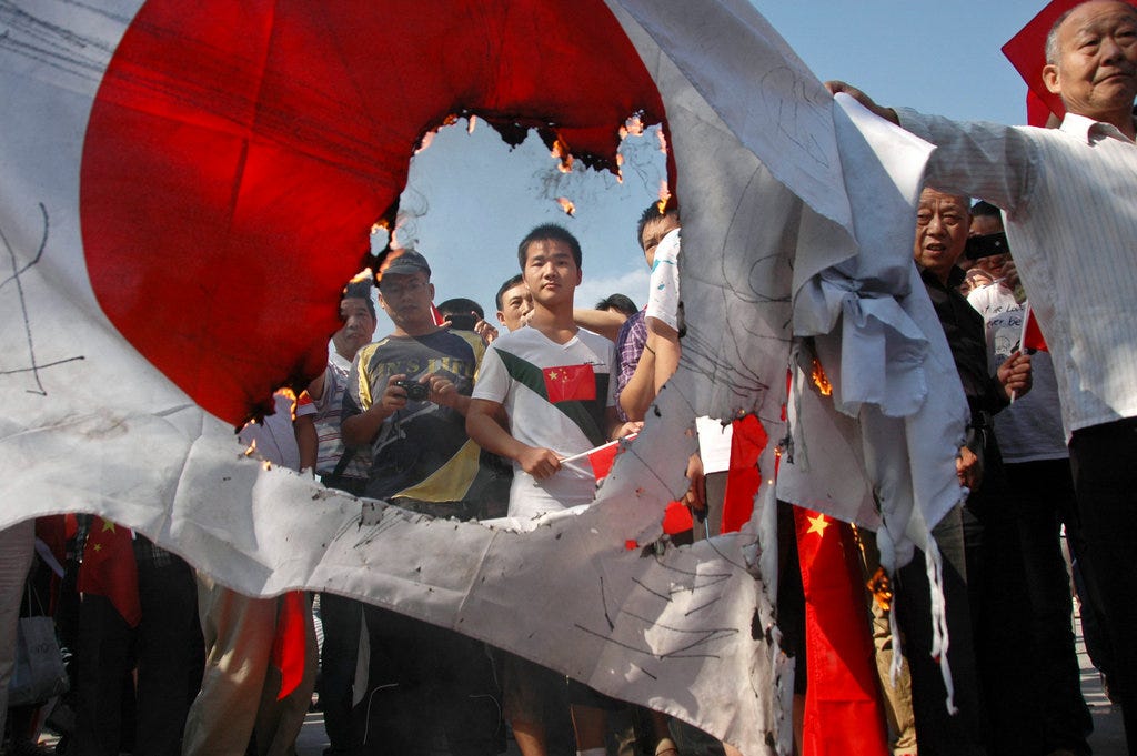 There is an underlying hostility towards Japan, resulting from unspeakable war crimes committed during WWII that it never officially apologised for.
